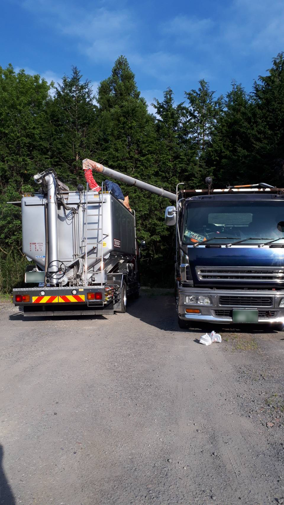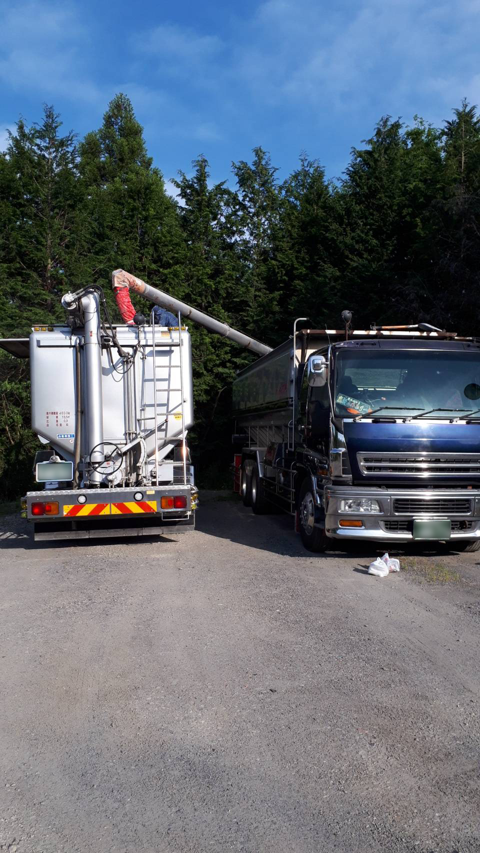 大型車で入れない農場の餌を増トン車に移し替える作業です❗